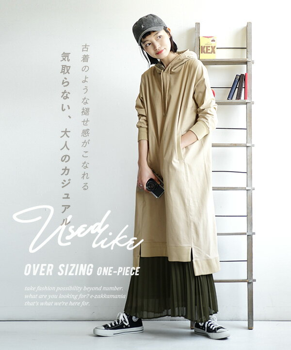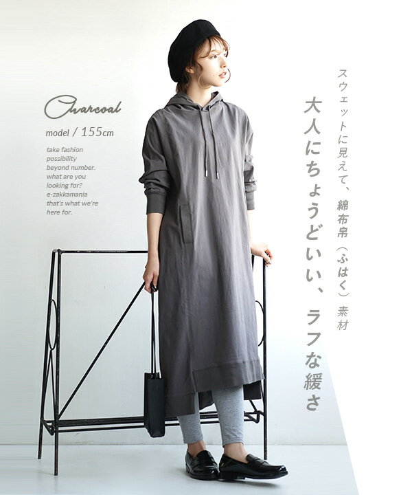 商品番号:32570-1900719商品カテゴリ: #テンションあがる!おうち服 【ベージュ】【グレー】 肌色 灰色 チャコール レディース トップス ワンピース ワンピ ロングワンピース ロングワンピ ロング丈 ロング 膝下 ひざ下 カットソーワンピース カットソーワンピ カットソー スウェット風 フーディーワンピース フーディーワンピ フーディー フード付き フード 長袖 長そで 大きいサイズ 大きい 大きめサイズ 大きめ オーバーサイズ ゆったり 体型カバー 楽ちん 楽チン 綿混 コットン混 ユーズド風 ユーズドライク 古着風 無地 スリット サイドポケット カジュアル おしゃれ オシャレ きれいめ キレイめ シンプル 春 春服 春物 夏 夏服 夏物 春夏 服 新作 新着スウェット風な布帛素材のフーディーワンピーススウェット素材に見えて、綿布帛(ふはく)のフーディーワンピース。