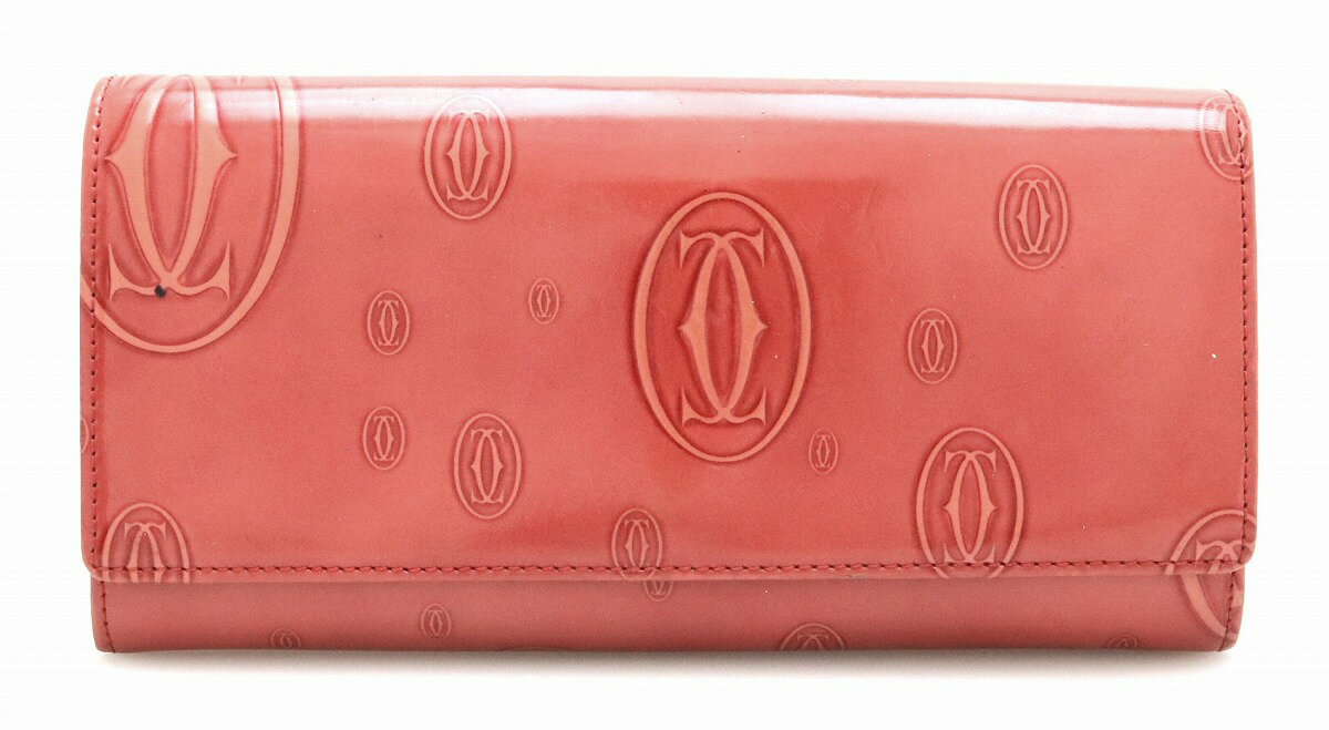 【新着】Cartier(カルティエ) 札入れ マストライン ボルドー×ゴールド 長財布 レザー×金属素材【20200326】【中古】